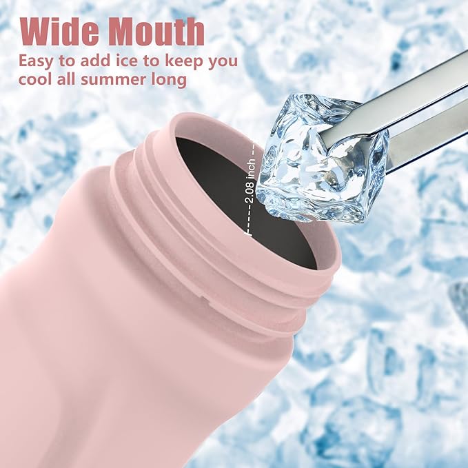 - 【Wide Mouth Design】Ice and water fill-ups are a cinch with our wide mouth insulated water bottle, no spills or mess. And cleaning? Effortless! Reach every corner with ease using a sponge or brush, bidding farewell to the struggle of cramming ice cubes into narrow openings.