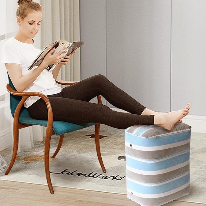 - 【Very User-Friendly Design】 Our inflatable foot rest pillow with 2-in-1 double valve,the upper black air valve is a one-way air inlet for inflating or replenishing gas. It is easy to get.