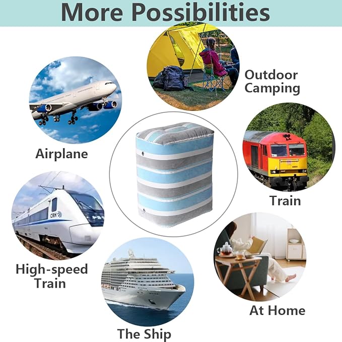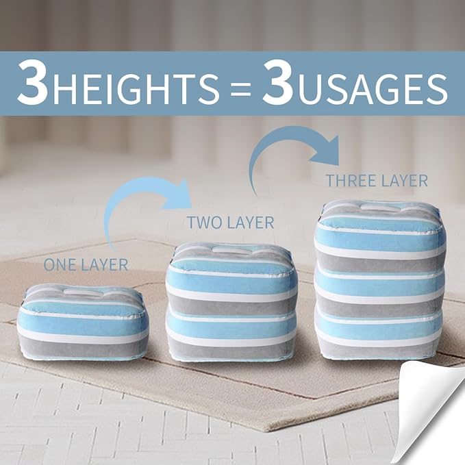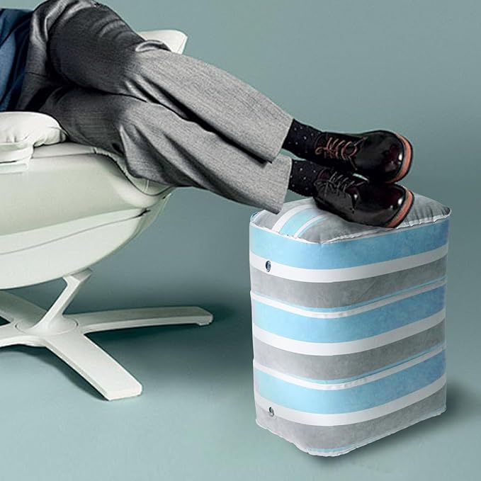 Baiao Inflatable Travel Foot Rest Pillow, Inflatable Foot Rest Pillow for Travel, Adjustable Height Leg Pillow for Kids & Adults on Plane, Car, Train, Office and Home(Blue)