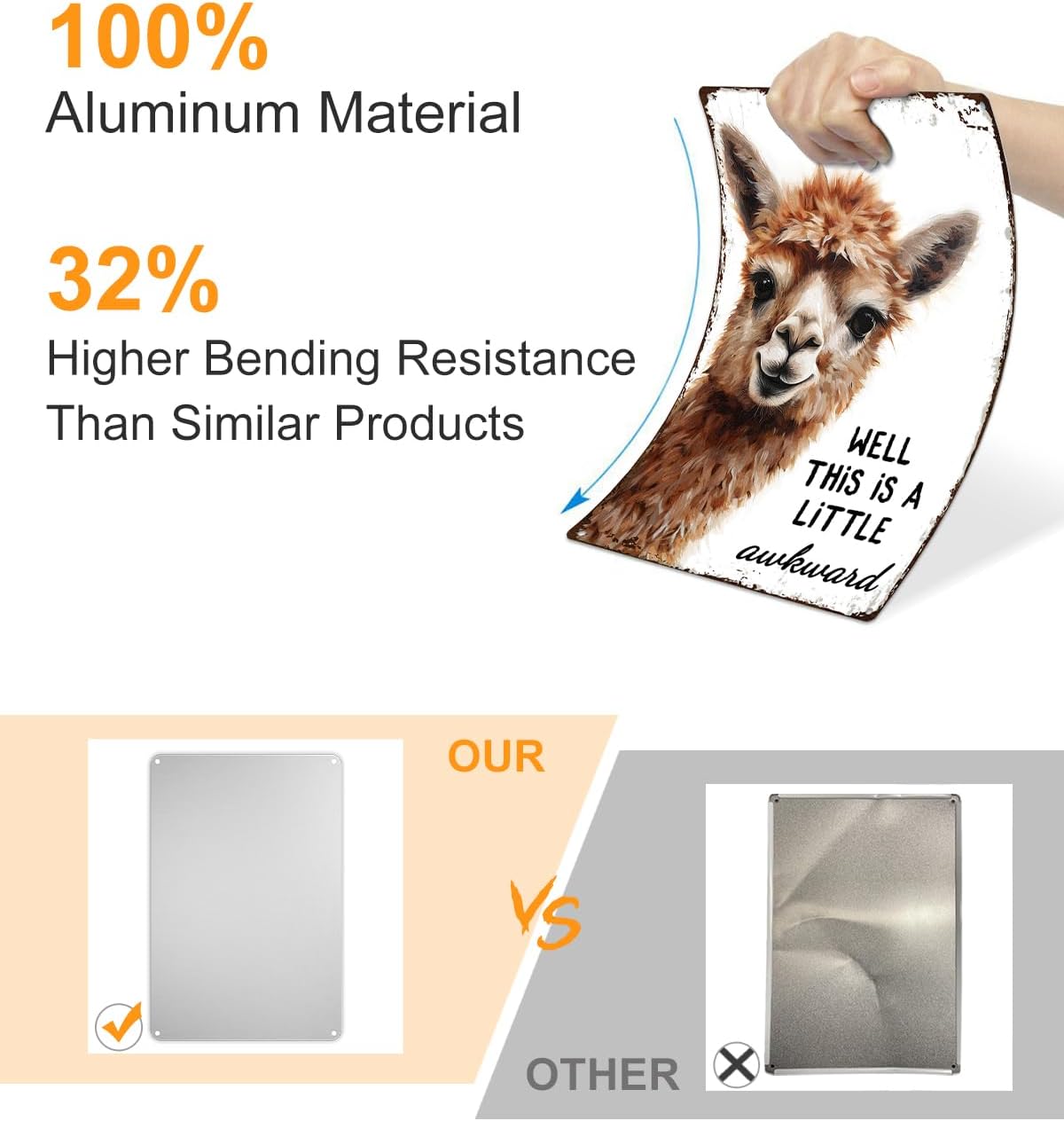 - 【Constructed from 100% rust-free aluminum】With four pre-drilled holes in the rounded corners, it's easy to hang on walls or other surfaces, allowing for versatile indoor and outdoor display.
