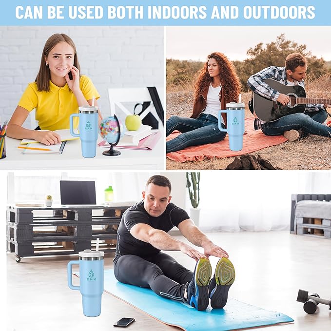 40oz stainless Steel Insulated Tumbler with Handle, lid and straw for cold water, Iced tea, or coffee - 100% Leak-Proof - Cupholder Friendly Travel Mug- Gifts for Women Men Him Her (Blue)