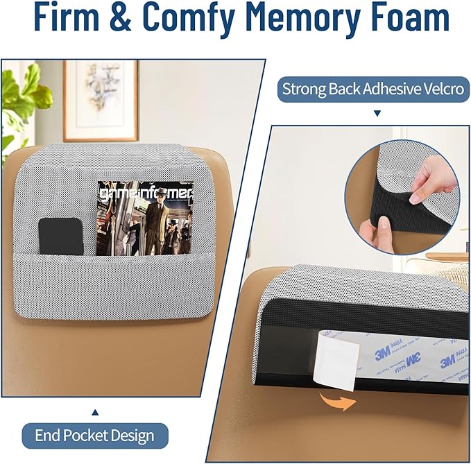 PouHenier.jh Ergonomic Headrest Pillow for Recliner Chair Sleeping Neck Support, Memory Foam Head and Neck Cushion Pillow with Adjustable Velcro for Sofa, Couch, Office Chair, Side and Rear Pockets