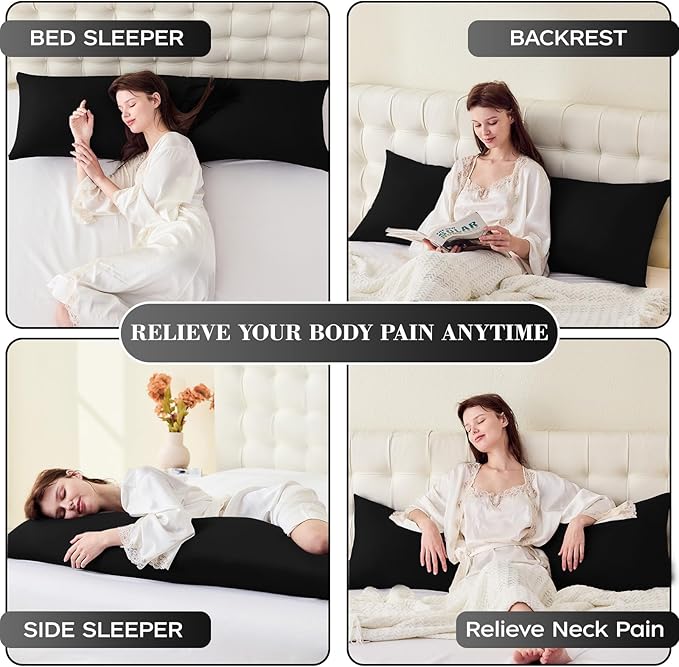 - 【Versatile Support】: Ideal for various sleeping positions, this large body pillow maintains its shape over time, preventing lumpiness or flattening. Perfect for side and back sleepers, it offers extra comfort and support for relaxing hips, back, neck, or stomach. It effectively alleviates body aches like back and hip pain, catering to the needs of adults and pregnant women.