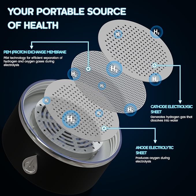 - Stylish, Portable and Versatile - Featuring a sleek, stylish design, our hydrogen ion water bottle comes with a handy strap for easy portability. Whether you're hitting the gym, hiking trails, or commuting to work, take your hydrogen water with you wherever you go!