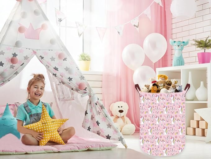 Pink Laundry Hamper,Unicorn Laundry Basket Collapsible Girls Storage Baskets for Home Decor,Office,Toy Organizer,(Pink Unicorn)