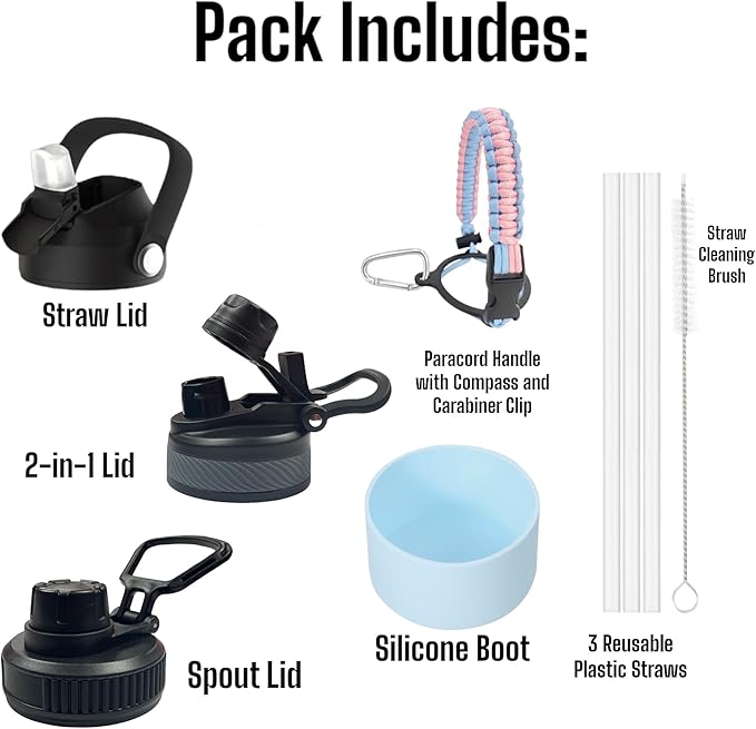 - ADVENTURE-READY ACCESSORIES: With a silicone protective boot, a paracord bottle holder featuring a compass and carabiner clip, an extra plastic straw, and a convenient straw cleaning brush, our set is designed for those always on the move.