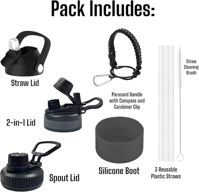 - ADVENTURE-READY ACCESSORIES: With a silicone protective boot, a paracord bottle holder featuring a compass and carabiner clip, an extra plastic straw, and a convenient straw cleaning brush, our set is designed for those always on the move.