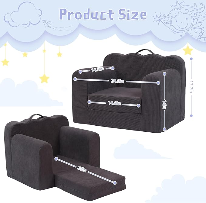 - ✨ 2-in-1: Not only can it be used as a cozy little sofa, but it can also be folded into a comfortable recliner to meet your child's different needs. Children can choose the right sitting position according to their own preferences and enjoy different comfortable experiences.