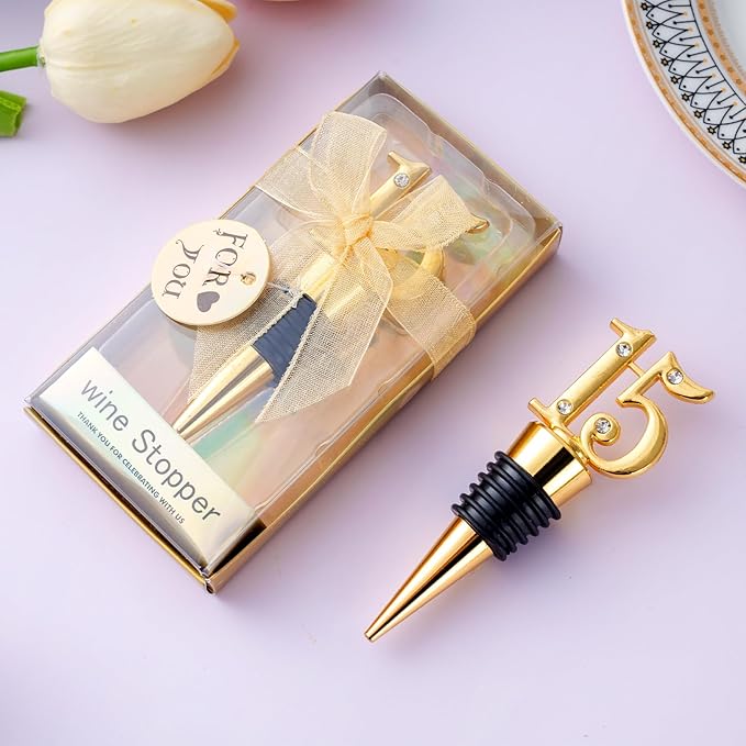24-Pack 15 Wine Bottle Stopper for 15th Birthday Party Favors, Quinceañera Party Favors - 15 years old Wedding Anniversary Souvenirs or Decorations, Gift for Guests