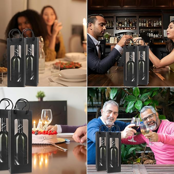 - 【Quantity】You will get 20 pieces black paper wine bags with window and handle,make your gift more elegant.