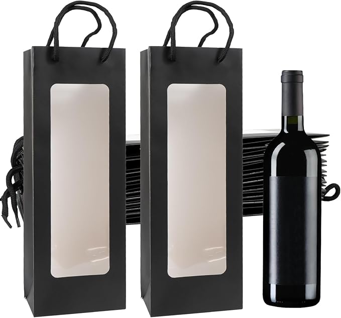 - 【Quantity】You will get 20 pieces black paper wine bags with window and handle,make your gift more elegant.