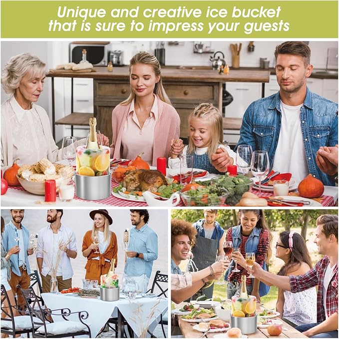 - ใ๐๐๐ซ๐๐๐๐ญ ๐๐จ๐ซ ๐๐ฅ๐ฅ ๐๐๐๐๐ฌ๐ข๐จ๐ง๐ฌใDIY a unique Ice bucket mold with your family and friends,you can use any materials you like (fruit, flowers, strawberry, Halloween and Christmas Props etc). Our ice mold wine bottle chiller are not only make the champagne bottles stay chilled at the perfect temperature, but also adds a classy vibe to any gathering. Perfect for Birthday parties, Weddings, Christmas, Halloween, Thanksgiving, Spring Festival, Couple dates,Bars and all kinds of parties.