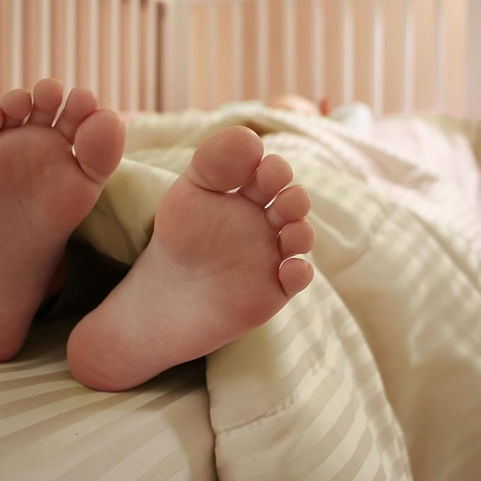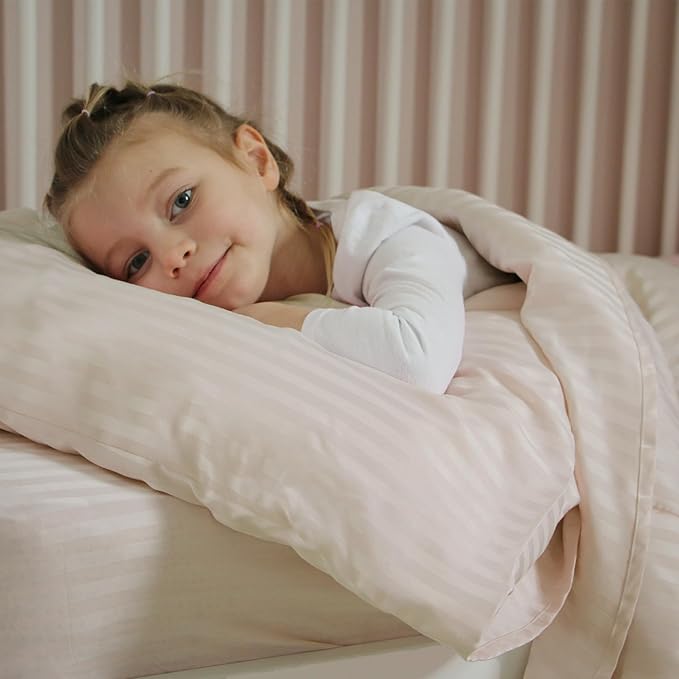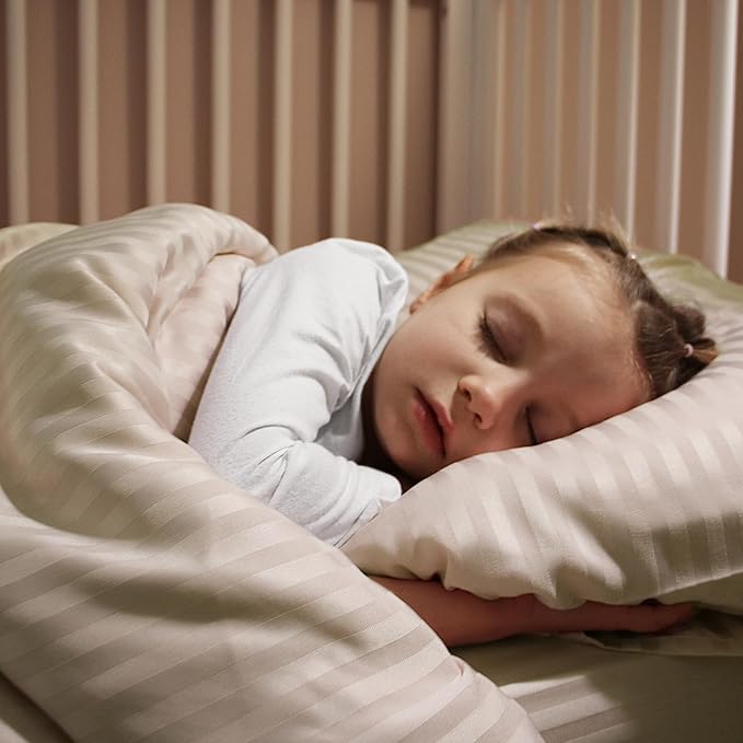 Toddler Bedding Set - 4 Piece Soft Crib Bedding Set for Boys and Girls, Includes Toddler Comforter, Flat Sheet, Fitted Sheet and Pillowcase, Cream Stripe