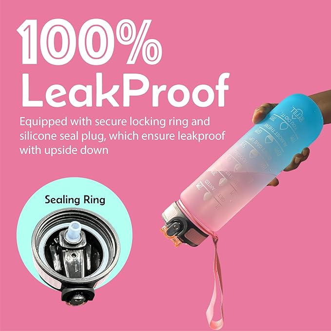 - 【MOTIVATIONAL QUOTE & TIME MARKER】This water bottle has a generous capacity of 32 ounces, providing ample hydration throughout the day.