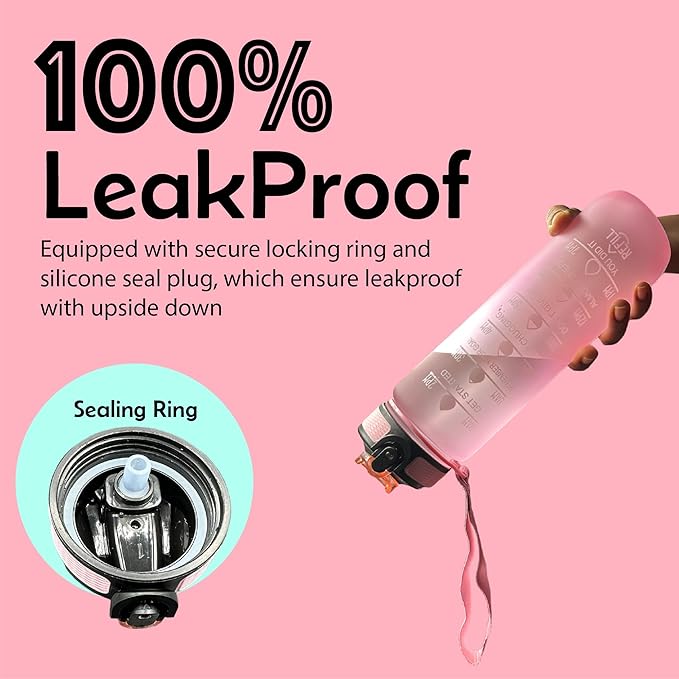 - 【MOTIVATIONAL QUOTE & TIME MARKER】This water bottle has a generous capacity of 32 ounces, providing ample hydration throughout the day.