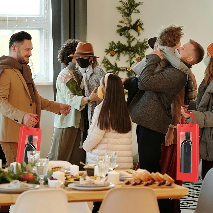 - 3.What You Will Get:The package includes 20 pieces red wine bags with window and handle,which are intended for wine bottles or other small decorations.