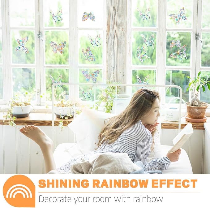 - 【Package Include】The package contains 80pcs butterfly-shaped window stickers made of transparent prismatic vinyl that convert the sun's rays into a stunning rainbow in your room.