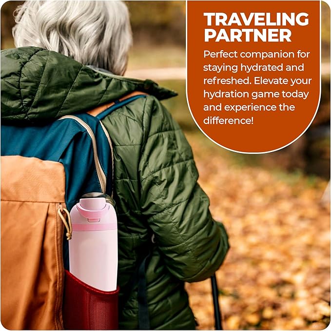 - [ERGONOMIC CARRY LOOP] The ergonomic carry loop makes it easy to take this insulated water bottle with straw anywhere. Ideal for hiking, commuting, or daily errands, it offers a convenient way to stay hydrated on the move