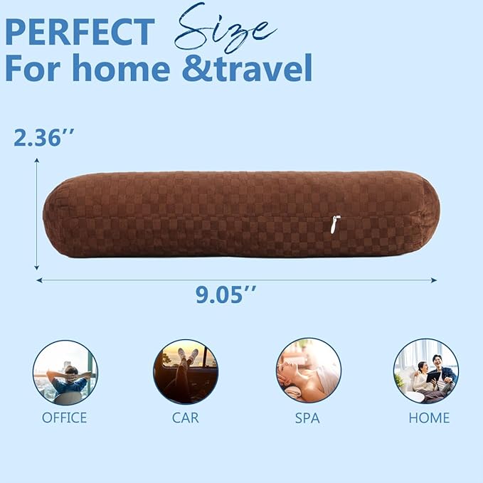 Health Cervical Neck Roll, Comfortable and Highly Resilient Bolster Pillows, Round Neck Pillows Support for Sleeping, Large Size Bolster Pillow for Bed, Legs, Back and Yoga (Checkerboard--Brown)