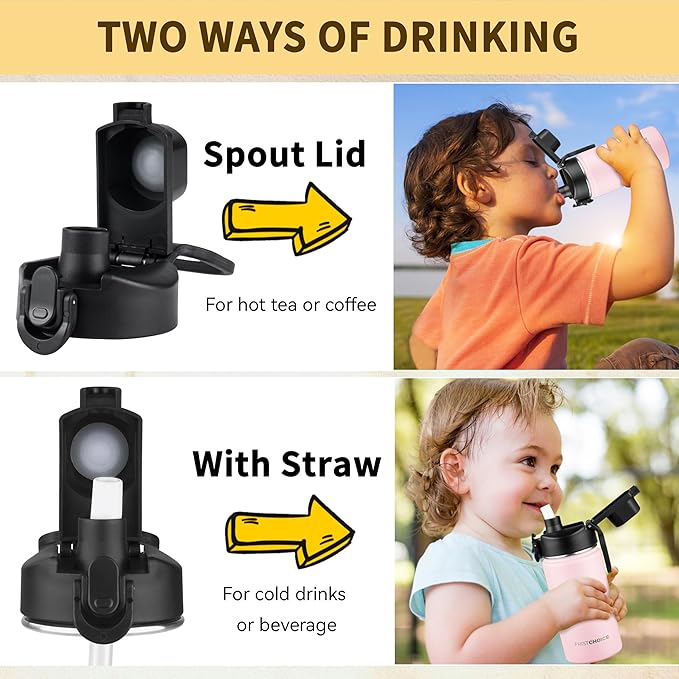 - β π³πππ-πππππ π«πππππ & π¬πππ ππ πͺππππ: Our stainless steel water bottles are equipped with a spout lid and a removable straw that free you to drink water the way you want.With just a click of a button,children can effortlessly open it with one hand.Our spout lids seal well and come with a handle to make it easy to carry.