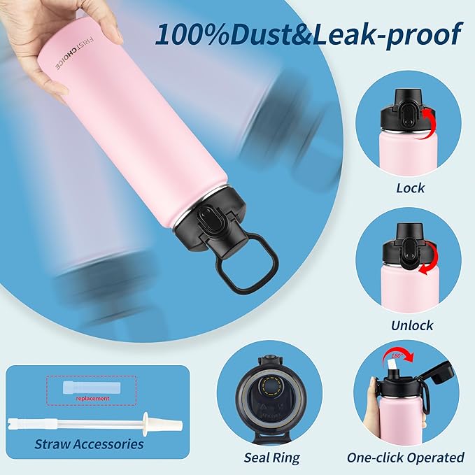 - β π³πππ-πππππ π«πππππ & π¬πππ ππ πͺππππ: Our stainless steel water bottles are equipped with a spout lid and a removable straw that free you to drink water the way you want.With just a click of a button, you can effortlessly open it with one hand.Our spout lids seal well and come with a handle to make it easy to carry.