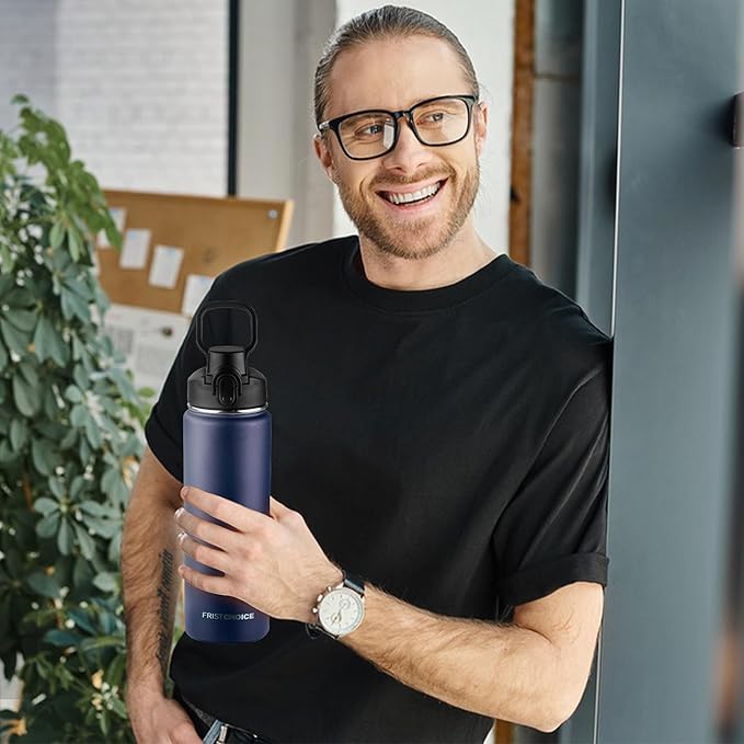 Insulated water bottle with Straw,24oz Stainless Steel Water Bottle for Adult Kids,Double Wall Vacuum Wide Mouth Insulated Water Bottle for Sports,BPA-free and Leak-proofοΌ24oz,Navy blueοΌ