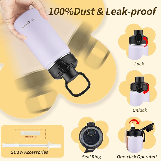 - β π³πππ-πππππ π«πππππ & π¬πππ ππ πͺππππ: Our stainless steel water bottles are equipped with a spout lid and a removable straw that free you to drink water the way you want.With just a click of a button,children can effortlessly open it with one hand.Our spout lids seal well and come with a handle to make it easy to carry.