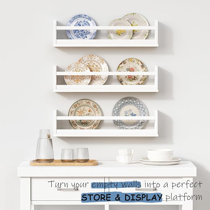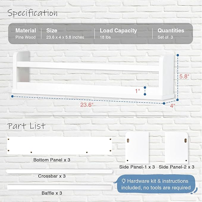 - [New Design 1: Kids Wall Bookshelf with Lip] The 24 Inches Long Harwaya floating nursery book shelves has not only a hanging rod in the frond, but also a bottom lip to prevent kids books from slipping through the gaps.