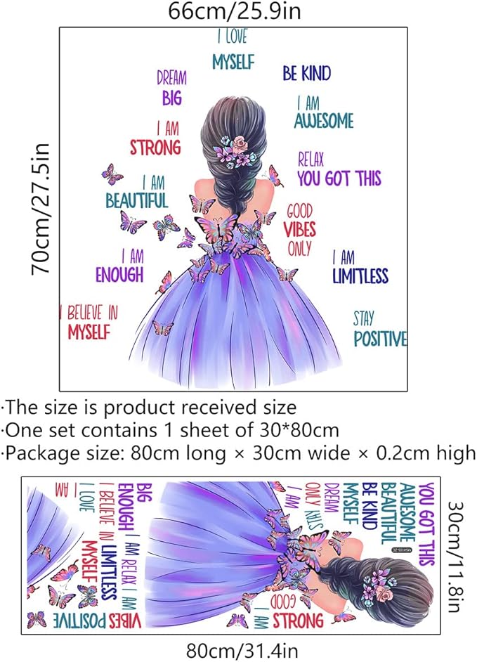 - 🦋【Stylish Pattern】Girl wall decals inspirational quote wall decals, flying butterfly print art and modern design into an eye-catching mural. This sticker is very suitable for nursery, bedroom, playroom, living room, adorable kids room decor.