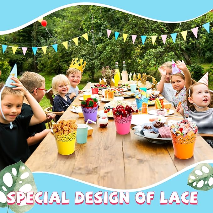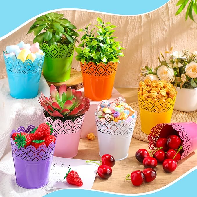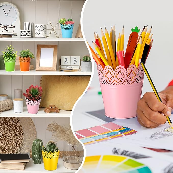 - Use with Confidence: the buckets with hollow lace are made of quality galvanized metal, smooth and reliable, the bright colors are not easy to fade, resistant to wear and tear, not easy to break or fade, and can accompany you to use for a long time