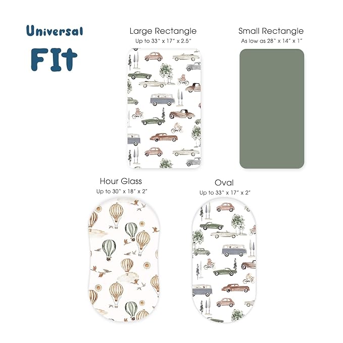 GRSSDER Stretchy Ultra Soft Fitted Bassinet Sheets 3 Pack, Universal Fit for Bassinets Baby Cradle Moses Basket Oval Rectangle Mattress Safe and Snug, Stylish Bassinet Sheet of Cars Print for Boys