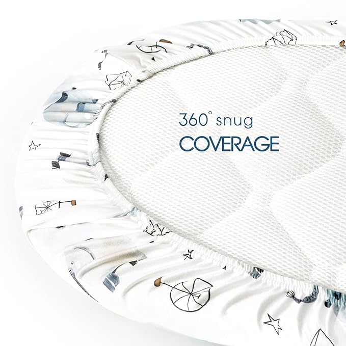 - Universal Fit – Measuring 32" x 16" x 5". Our bassinet sheets fit almost all standard oval, round, rectangle, hourglass shaped bassinet mattress. Each bassinet mattress pad cover comes with an elastic band encased at the bottom for safety.
