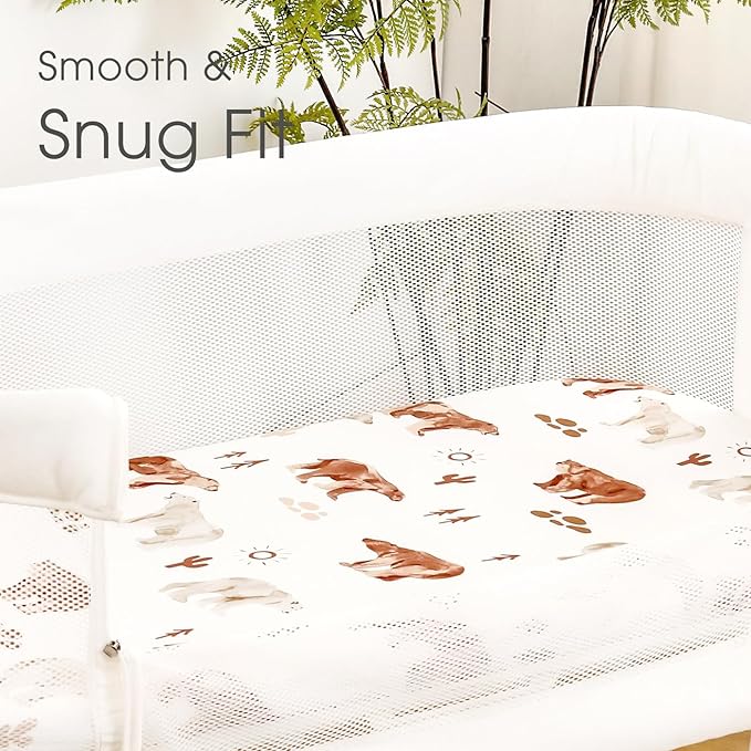 GRSSDER Stretchy Ultra Soft Bassinet Sheet 2 Pack, Universal Fit for Bassinets Baby Cradle Moses Basket Oval Rectangle Mattress or Changing Table Pad Safe and Snug, Stylish Print of Sunny Bear