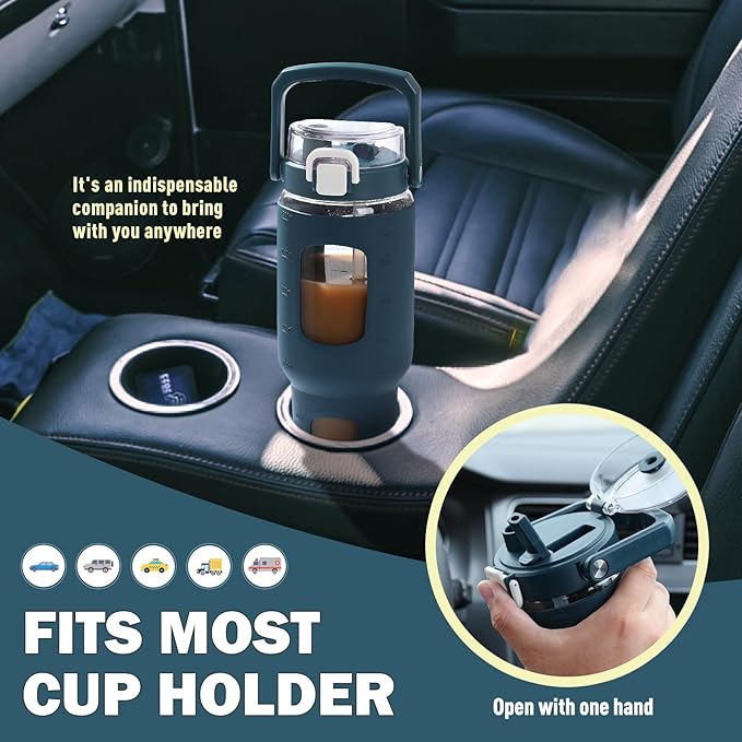 - FITS IN MOST CAR CUPHOLDERS-The glass tumbler with straw and lid design makes your cup stand out from any other glass coffee mugs, and it also fits most car cup holders, you can drink it safely while driving. Open with one hand so convenient for your daily use. The wide mouth is easy to clean and add ice and fruit.