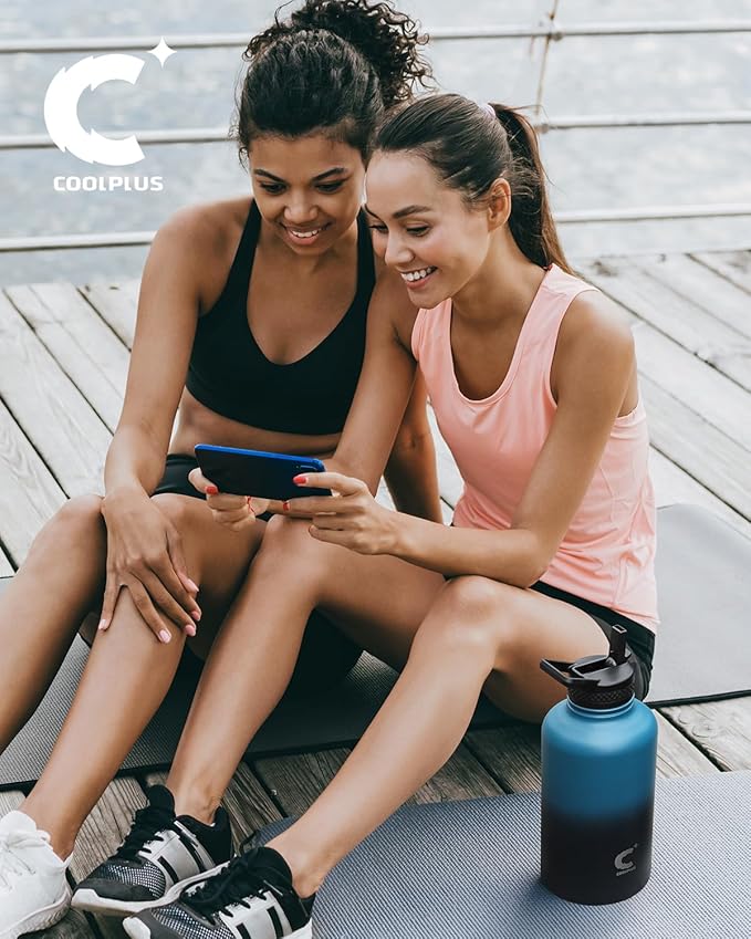 Coolplus 64 oz Water Bottle Insulated, Half Gallon Insulated Water Jug With Straw Stainless Steel Double-Walled Vacuum Metal Large Flask Bpa-Free Leakproof, Keep Cold 48 Hrs Hot 24hrs, Blue Black