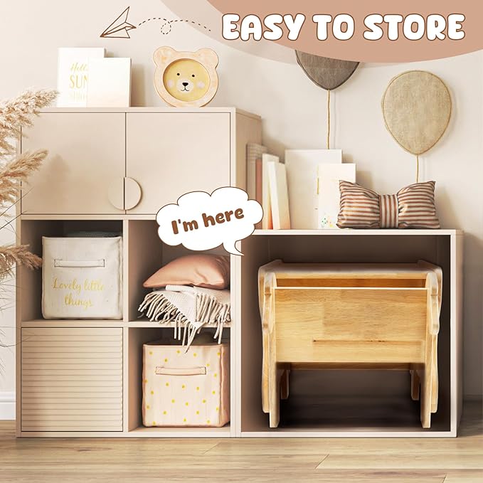 - [SAFE AND HEAVY-DUTY] Crafted from high-quality solid wood, this set is built to last and withstand the rigors of everyday use by active toddlers. All surfaces are smoothly finished with child-safe, non-toxic food-grade wood wax oil to ensure health and safety, making it a safe haven for your child to explore.