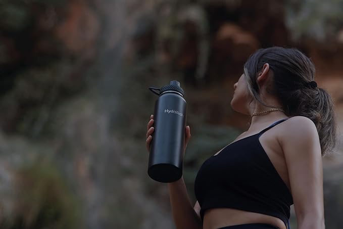 HydroTech Stainless Steel Leak Proof Water Bottle with Double Wall Insulation and 2 Lids (Straw Lid) - 40 OZ. (Black)