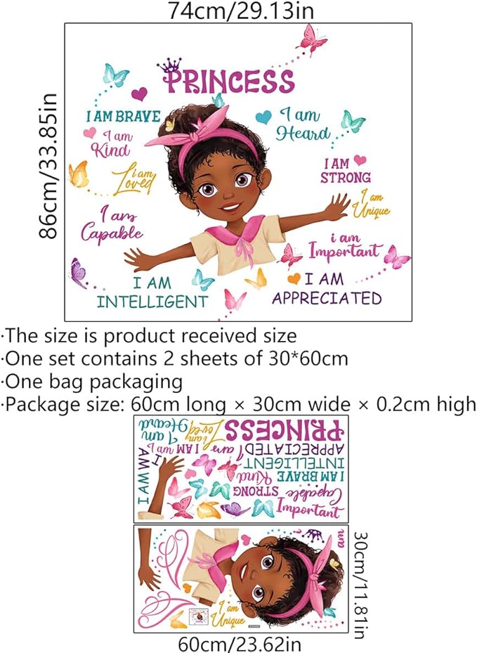 - 【Stylish Pattern】Black girl magic inspirational wall decals, butterfly print art and modern design into an eye-catching mural. This sticker is very suitable for nursery, bedroom, playroom, living room, adorable kids room decor.