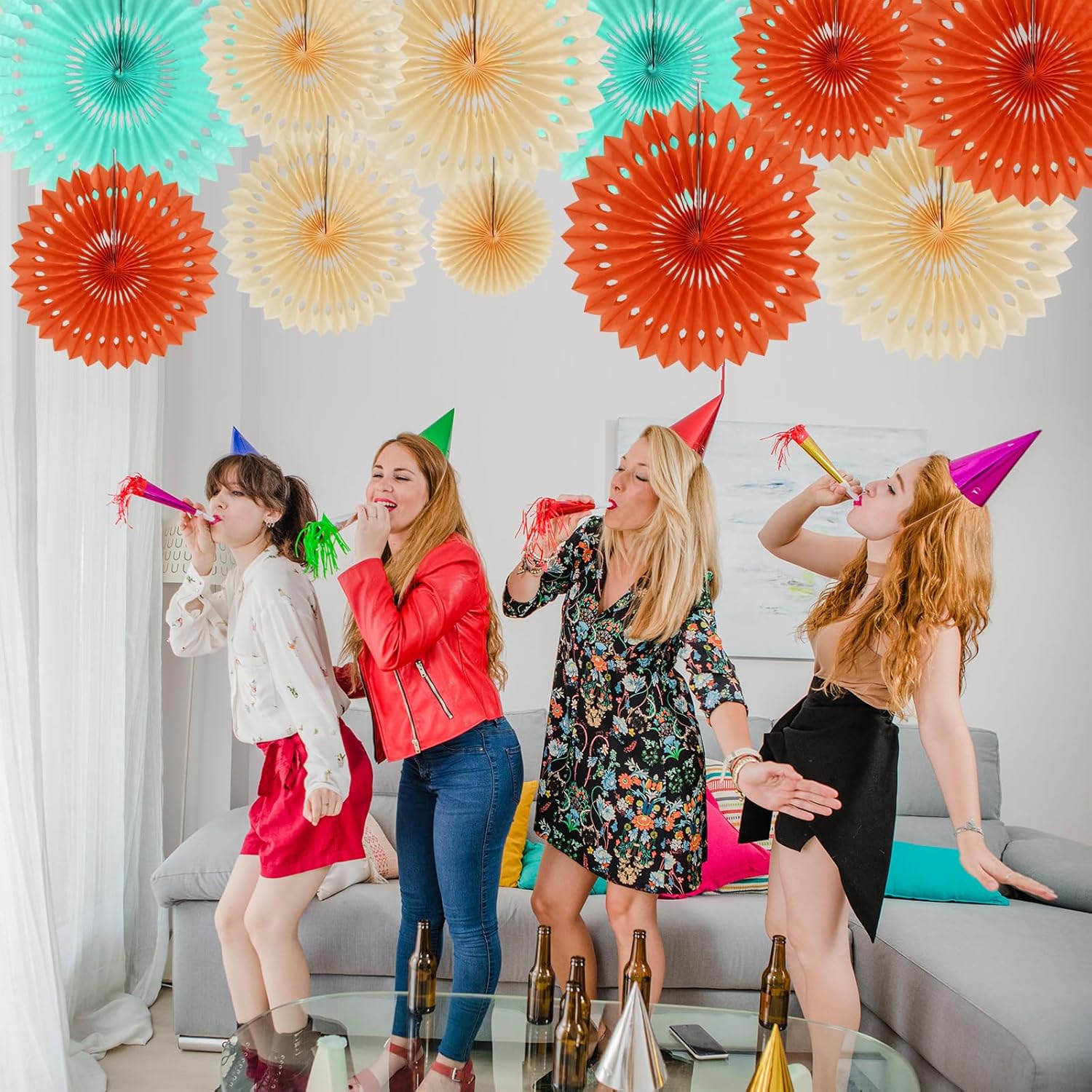 - 【Easy to assemble】: These hanging paper fans have a hanging string attached,just unfold the paper flower fan and fix it with the rope of the paper flower fan, then you can hang it to your favorite place and decorate your party perfectly in a few minutes.
