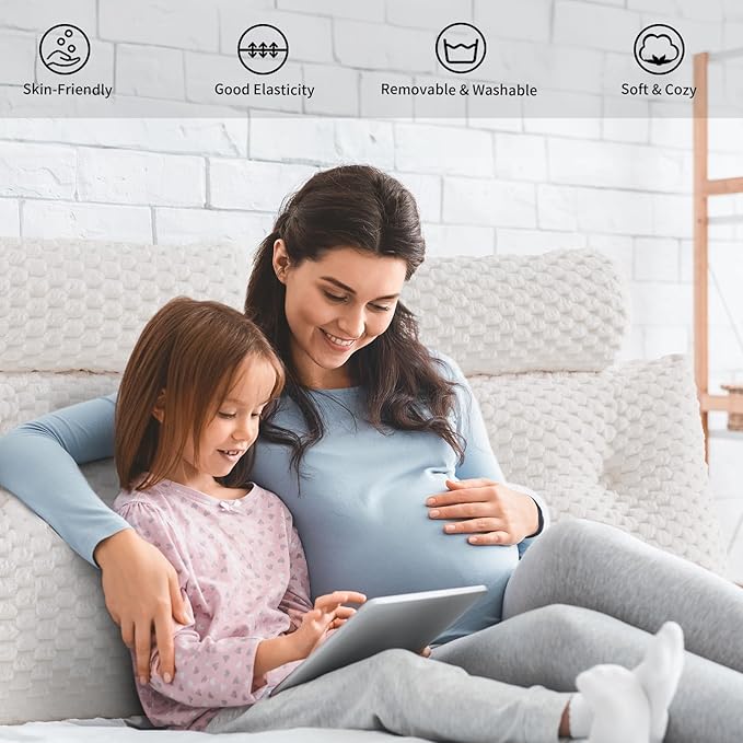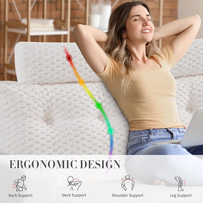 - [ERGONOMIC DESIGN] - The headboard pillow is designed with your comfort in mind. The ergonomically shaped pillow conforms to the natural curvature of your back, providing the perfect support for your upper body, and easing the stress on your back and shoulders. Reading, watching and resting in bed will be more comfortable than ever with our headboard pillow.
