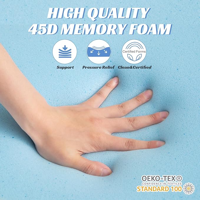 - 【Premium Memory Foam】: The top layer and the pad are crafted from high-quality 45D blue gel memory foam, ensuring cool and dry even with prolonged use. The bottom layer are filled with high-density foam, soft but supportive, never deform after long-term use.