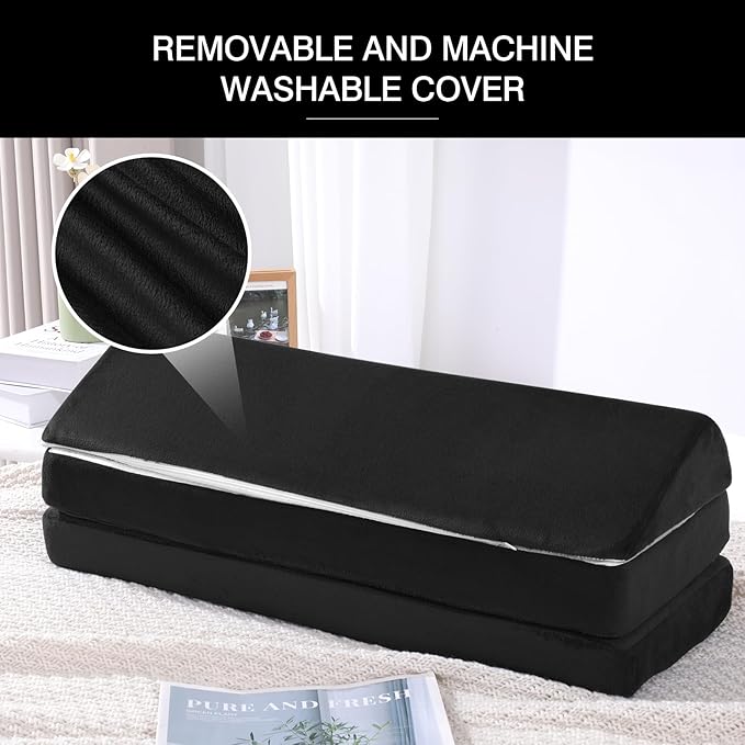 BALAPET 3-in-1 Adjustable Height Wedge Pillow, 7" Height Leg Knee Pillow for Side Sleepers & Aligns Spine, Supportive Bolster Pillow for Pregnancy Relieves Pressure Hip Leg Elevation, 22", Black