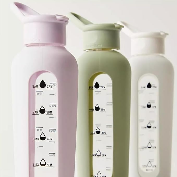 - WATER BOTTLE WITH MEASUREMENTS - This 24 oz water bottle is ideal for people who want to keep track of their fluid intake throughout the day. Count down and hydrate using the measured ounces, milliliters, or time markers printed on the bottle.