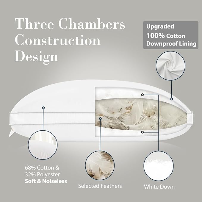 - Unrivaled Support and Softness: Our three-chamber filling design ensures the perfect balance of support and softness. Sink into a sumptuously soft touch as our premium natural fabric cradles your head with gentle support. Say goodbye to discomfort and hello to pure opulence.