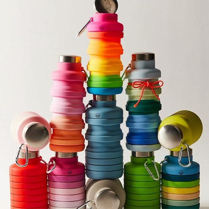- TRAVEL WATER BOTTLE COLLAPSIBLE - The perfect travel bottle that will collapse to a fraction of its size when you’re done drinking and want to store it away. No more bulky empty bottles that take up space. Foldable for easy space saving storage.
