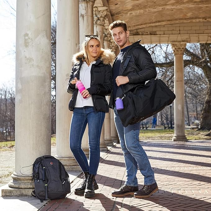 - TRAVEL WATER BOTTLE COLLAPSIBLE - The perfect travel bottle that will collapse to a fraction of its size when you’re done drinking and want to store it away. No more bulky empty bottles that take up space. Foldable for easy space saving storage.