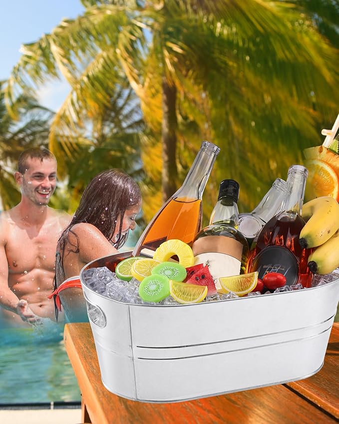 - Versatile ice buckets for all occasions: These 4 Gallon large capacity galvanized metal ice buckets are perfect for parties, beverage tubs, or beer buckets. their spacious design allows you to hold plenty of bottles, cans, and ice, ensuring that your drinks stay refreshingly cold throughout the event.