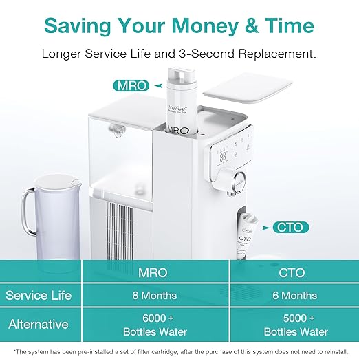 - It is commended to replace the SimPure CTO Filter Every 6 months to ensure the quality of the water. (Due to the difference in feed water quality, the above is estimate) And the CTO Smart Indicator Light will light up to remind you replace the filters.