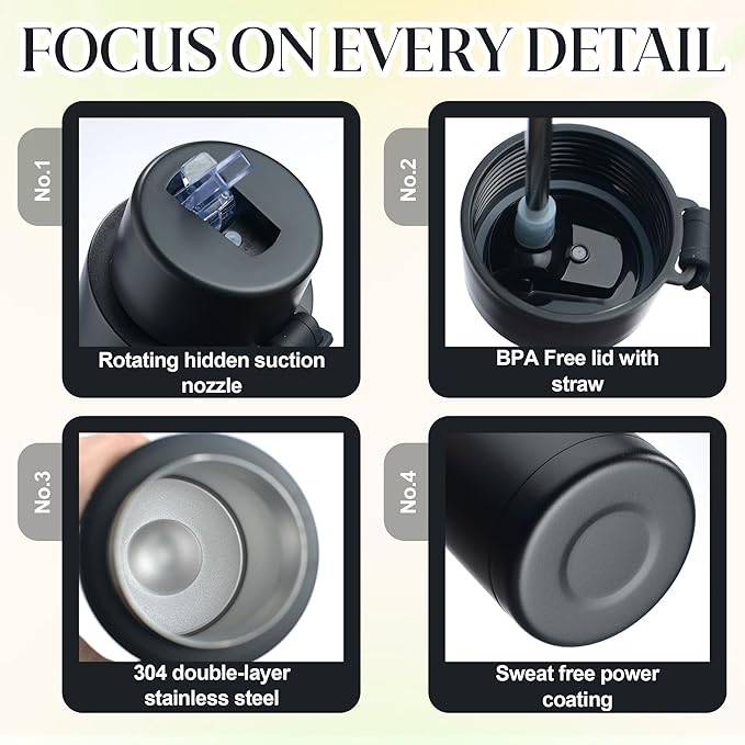 - Double Wall Vacuum Insulation: Keeps your drinks hot for up to 12 hours and cold for up to 24 hours, making it ideal for both warm and cold beverages.