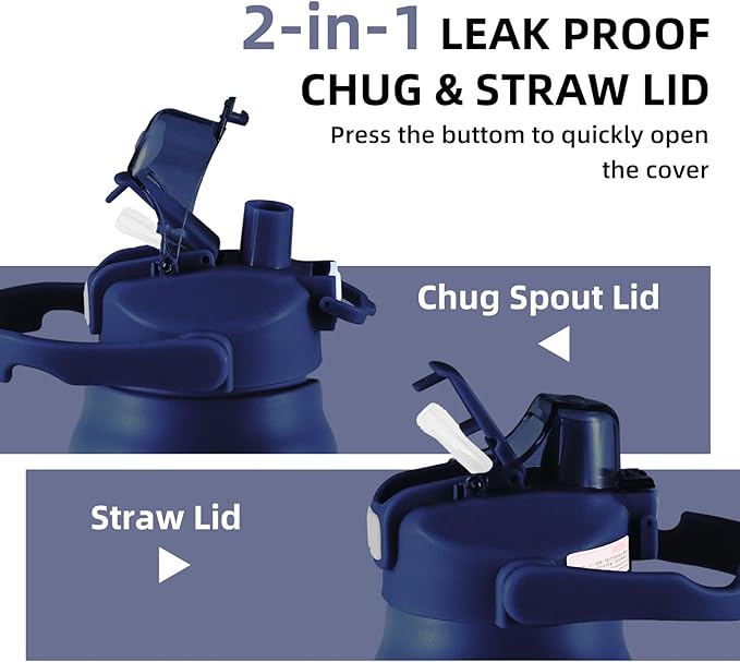 - ✔【2-in-1 Chug & Straw Lid】The 2-in-1 lid design converts into both a chug lid and a straw lid for easy use. When using the water jug, there is no need to change the lid, saving space and time.